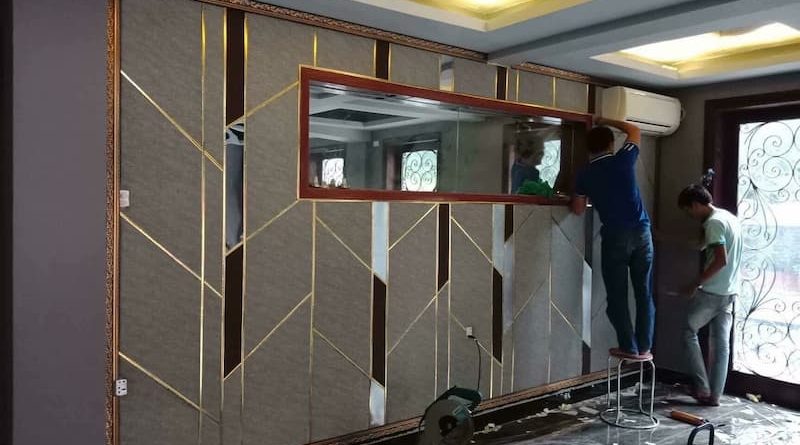 • Thi công: Công việc ốp lát các tấm nhựa PVC giả đá lên bề mặt tường, trần, vách.